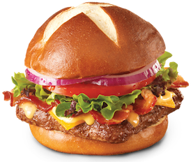 Applewood Smoked Bacon, Cheddar Cheese and Honey Mustard on Pretzel Bun